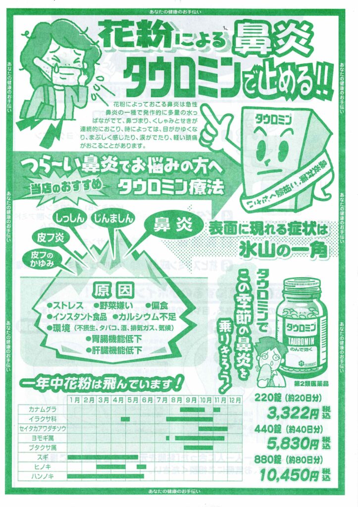 タウロミン選びで迷う方、鼻炎・湿疹・皮膚のかゆみを繰り返している方は、どうぞお気軽にご相談ください。