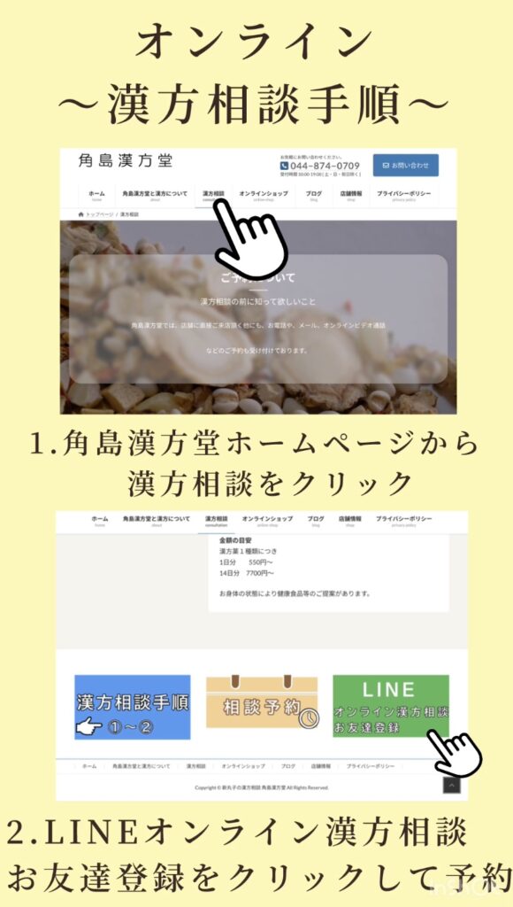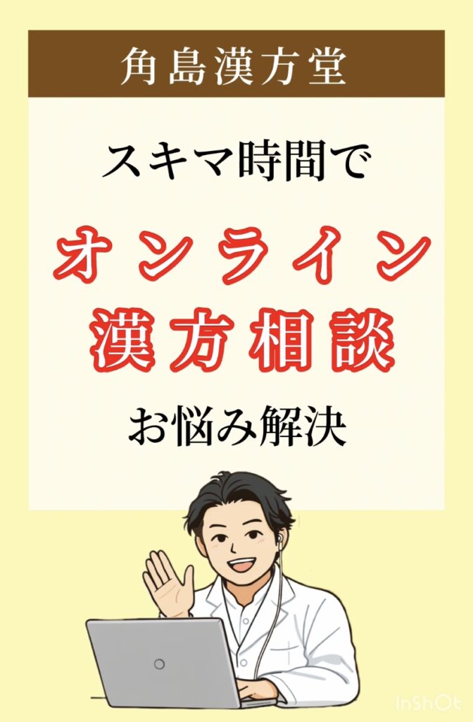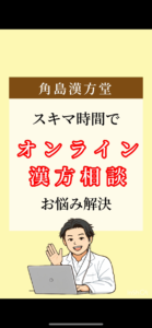 こんにちは。角島漢方堂です。お悩みのご相談はオンライン漢方相談でお気軽にご相談できます。お時間が取れる隙間時間にサクッと漢方相談!全国の方へ対応が可能で、当店で利用されるお客様が急増中です!お悩みがあれば、迷わず気軽にご相談ください!